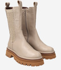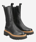 - Zipper closure, entry loops, stretch insert, contrast stitching, platform sole