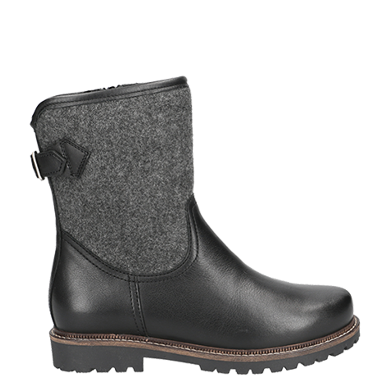 - warm lining, block heel, zipper, decorative seams, stretch insert