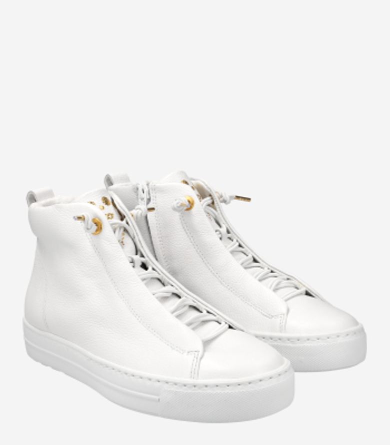 These SUPER SOFT hightop trainers from Paul Green leave nothing to be desired. The casual design made of smooth leather in white sets beautiful accents with the gold-colored zipper on the side. The super soft design and leather lining with terrycloth make every step feel good. Details such as the golden eyelets round off the cool overall look. Show your individuality with these sneakers! Each Paul Green shoe is made by hand in up to 160 steps and then checked. This ensures that they meet the high standards of fit and quality.