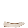 - Block heel, square toe, bow appliqué