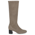 - Block heel, logo appliqué, zigzag stitching on the shaft, shaft made from flexible stretch material, decorative stitching