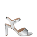 - Silver metal fastening, block heel, high heel in a timeless design, ideal for summer