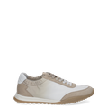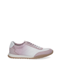 - Removable footbed, suitable for insoles, embossed logo, decorative stitching, zigzag stitching, entry loop, flexible stretch shaft, fine pastel color gradient (ombre effect) from pink to white on the textile surface and the laces