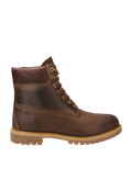 Dark brown marbled boots from Timberland made of greased leather. The shaft height is about 15 cm. The boots are equipped with a leather cover sole and a rubber profile sole and an approx. 25 mm high profile heel. US/EU Sizes.