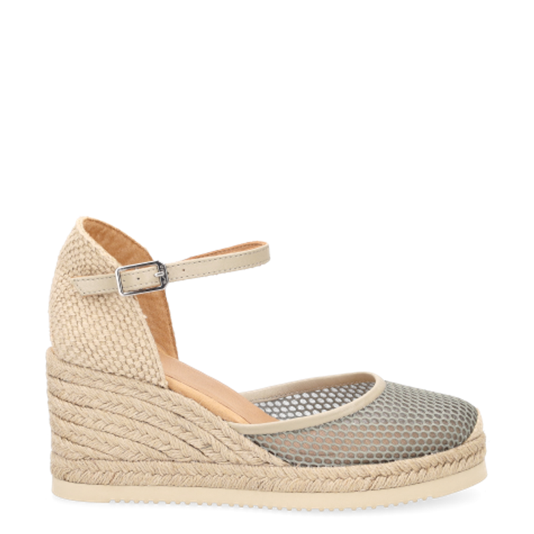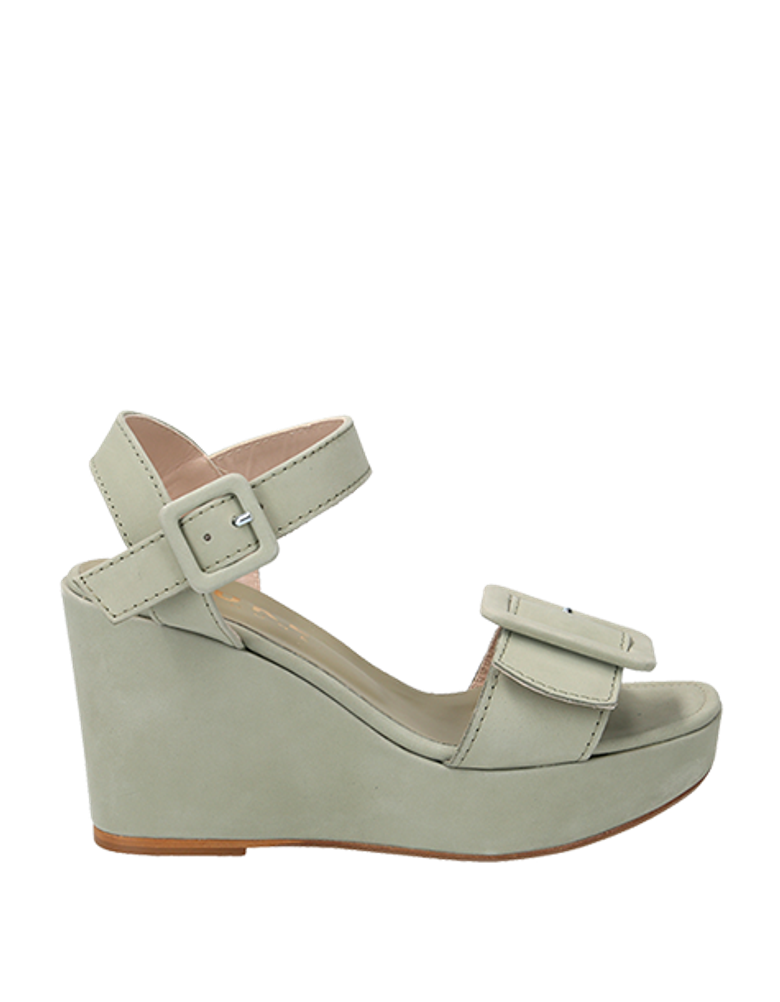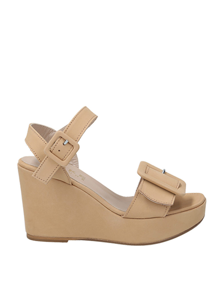 - Leather straps, stretch insert, metal closure, platform sole